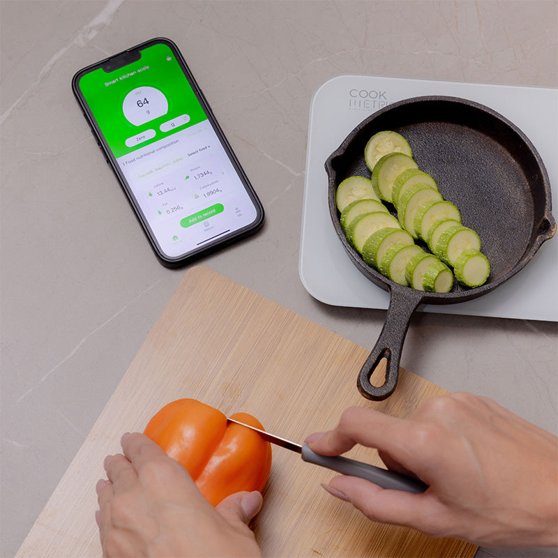 CookMetric's scale syncs instantly with our app, making it easy to track your eating habits and achieve your health goals on the go.